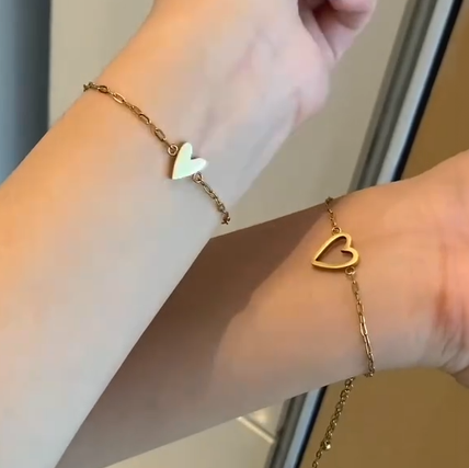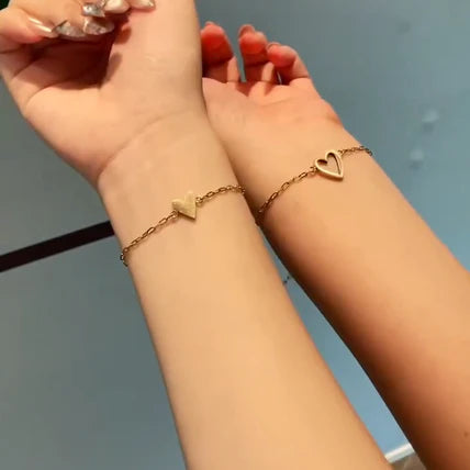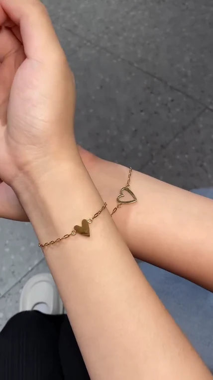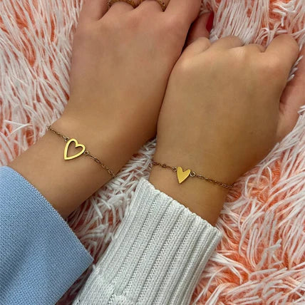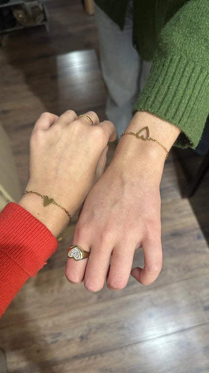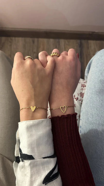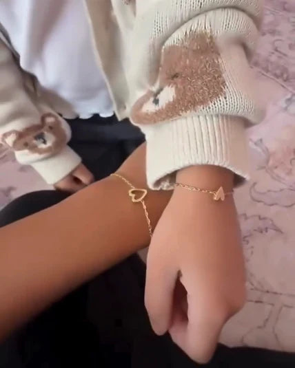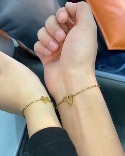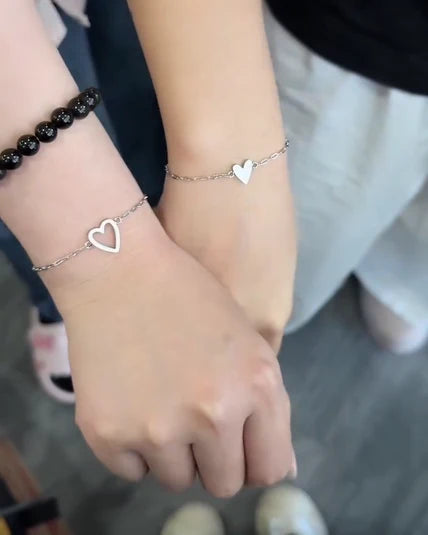 Chaque bracelet est orné d’un cœur plein ou d’un cœur ouvert – un symbole délicat de la connexion et de l’amour inébranlable qui vous unit.